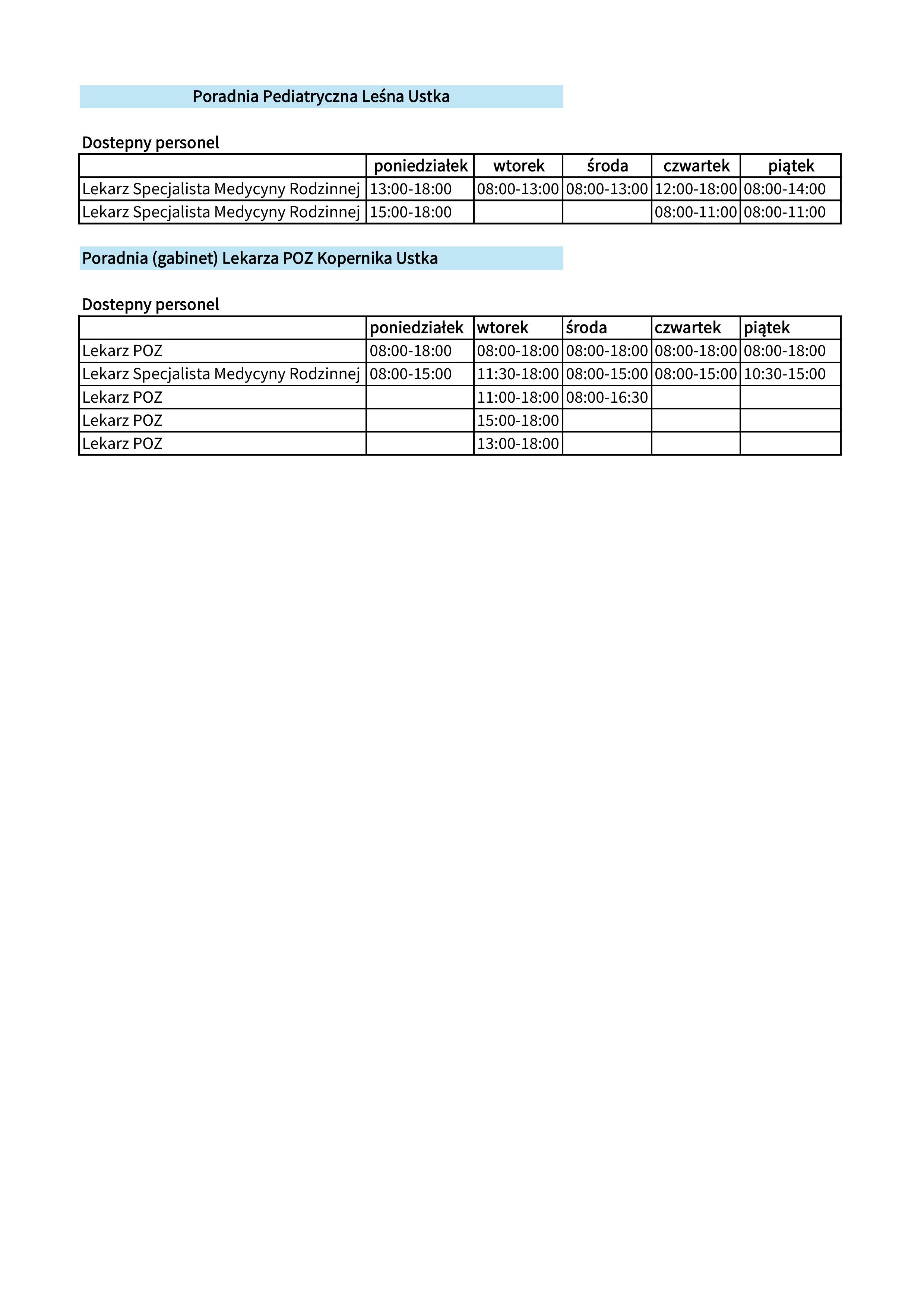 Informacja dla mieszkańców – harmonogram pracy Przychodni PZU Zdrowie Ustka