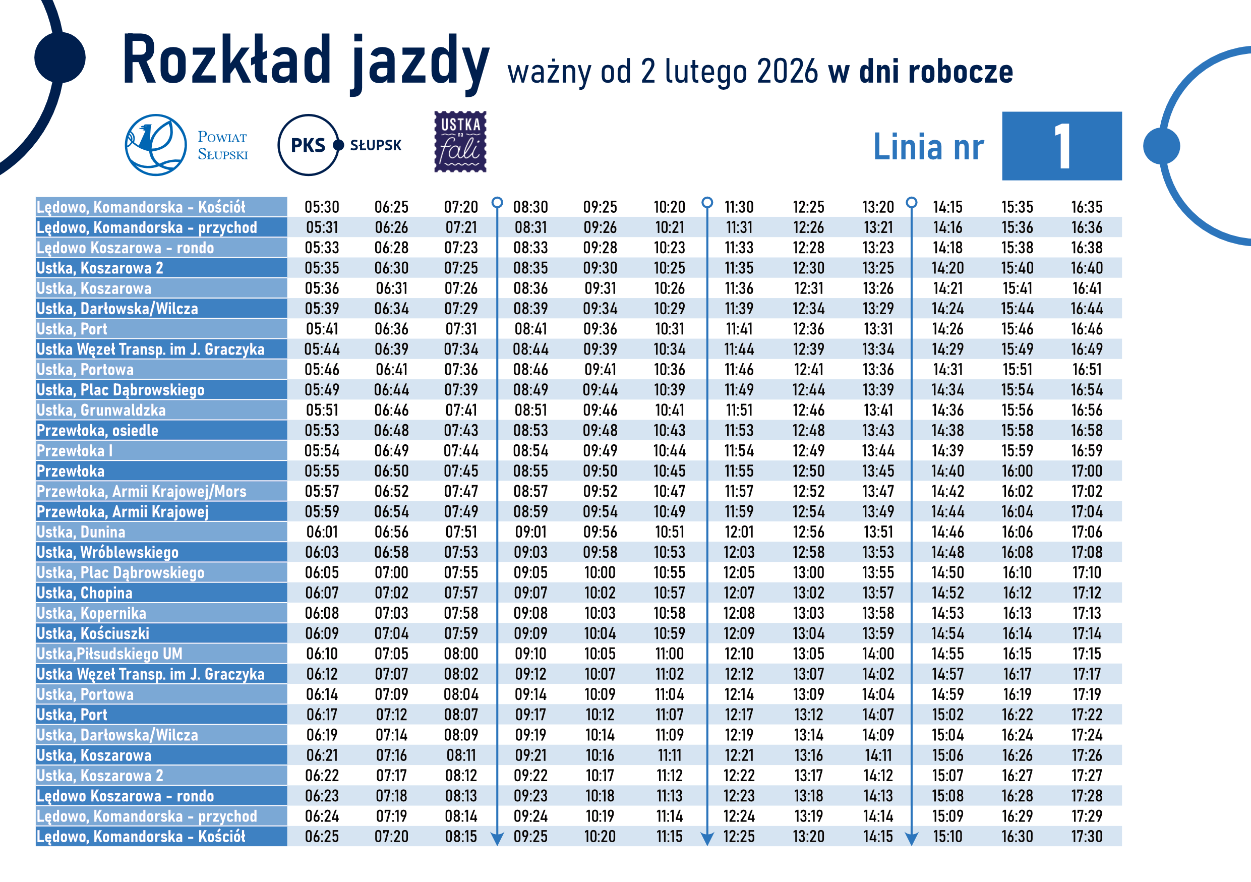 A pomniejsz czcionkę A standardowy rozmiar A powiększ czcionkęGodziny i częstotliwość kursów zostały dopasowane tak, aby obsłużyć także tereny, które od 1 stycznia 2026 roku zostały włączone w granice administracyjne Ustki, a nowym mieszkańcom zapewnić dojazd do szkół i zakładów pracy.