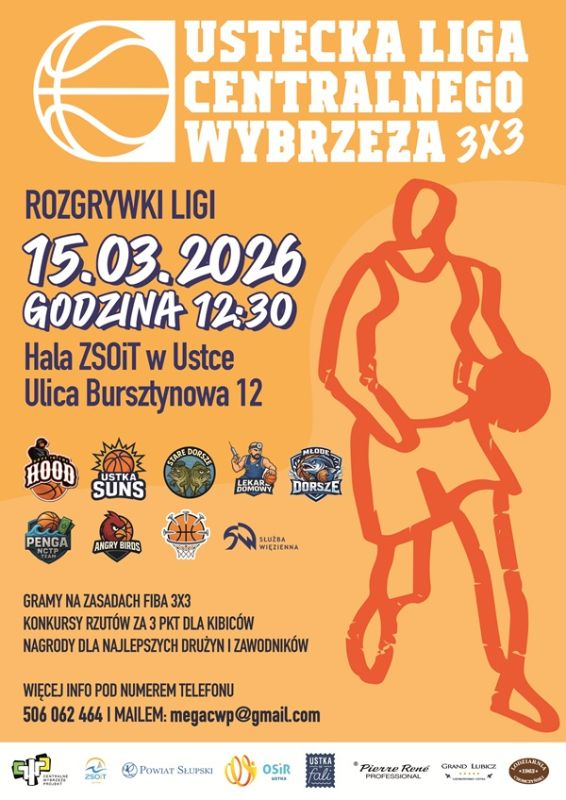 W najbliższą niedzielę, 15 marca 2026 r. o godzinie 12:30 w hali Zespołu Szkół Ogólnokształcących i Technicznych w Ustce przy ul. Bursztynowej 12 zostaną rozegrane mecze koszykówki w formacie FIBA 3x3. Rywalizacja w formacie FIBA 3x3 gwarantuje szybkie tempo i widowiskowe akcje.