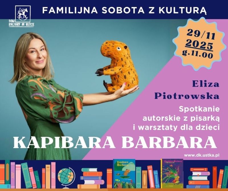 W listopadzie w ramach "Familijna sobota z kulturą" zapraszamy w ostatnią sobotę miesiąca 29 listopada na warsztaty z Elizą Piotrowską - autorką i ilustratorką książki pt. "Kapibara Barbara".